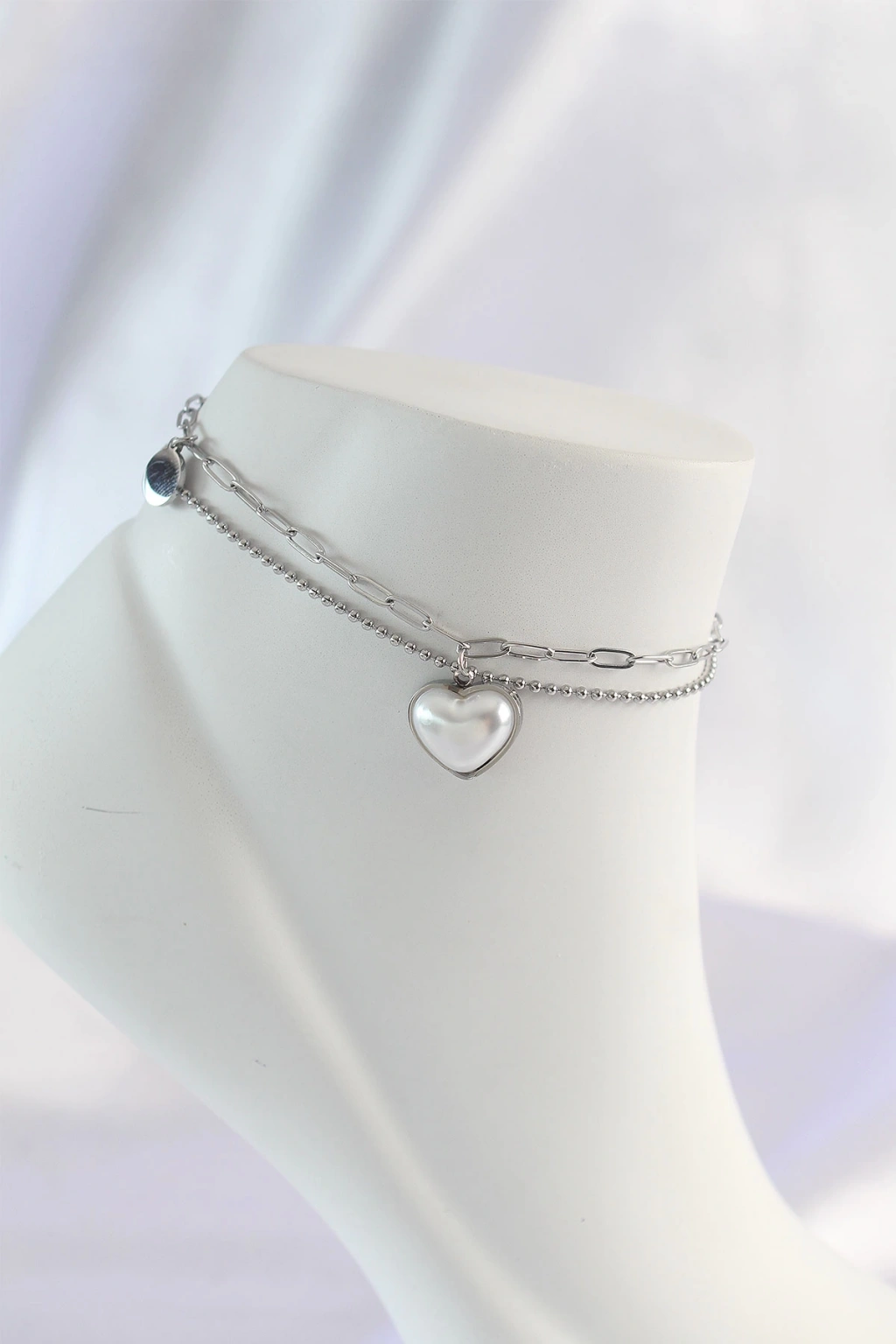 316L Çelik Gümüş Renk Beyaz Kalpli 2li Halhal