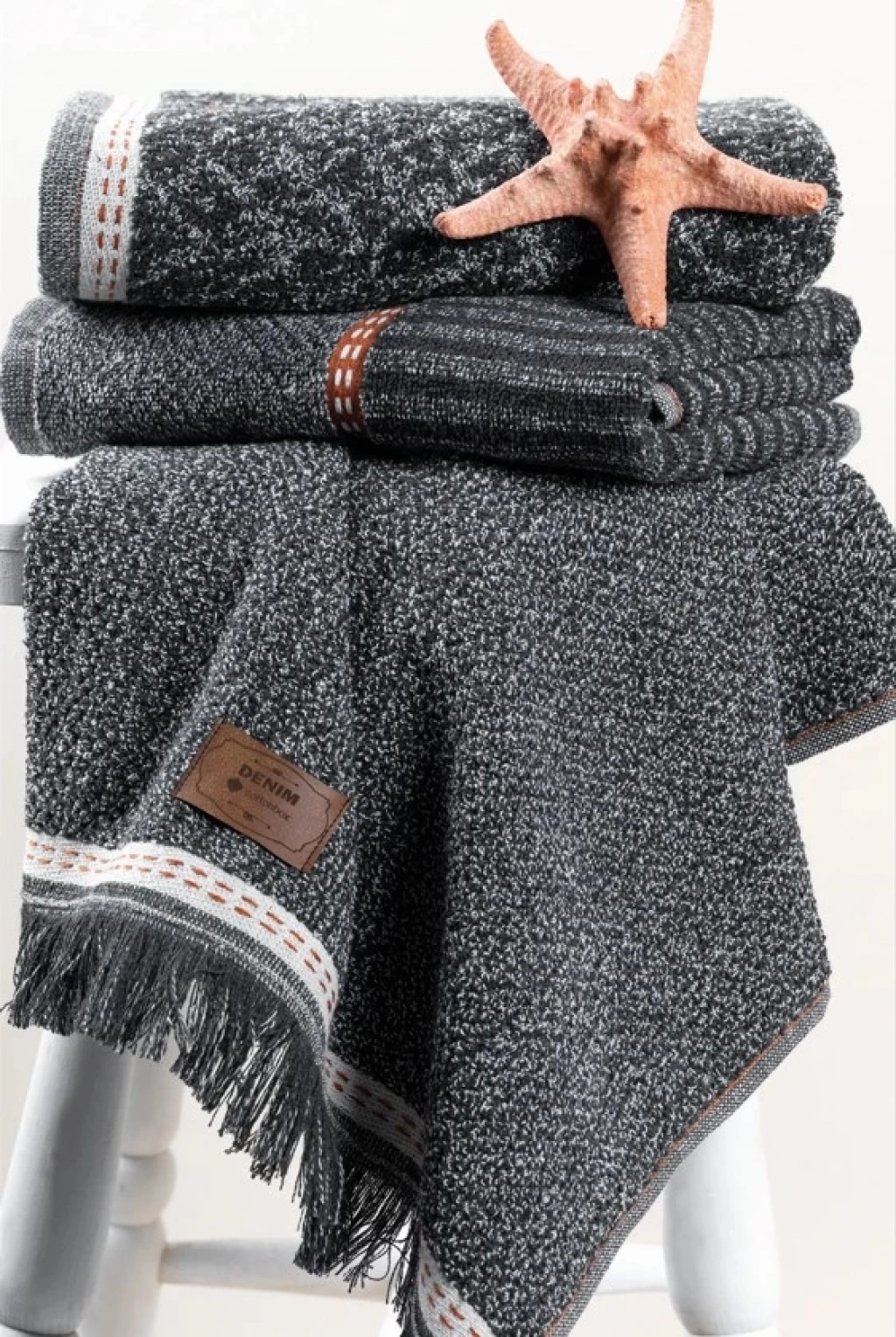 3'lü Jakarlı Havlu Seti Denim Antrasit 50x90 8680108067352