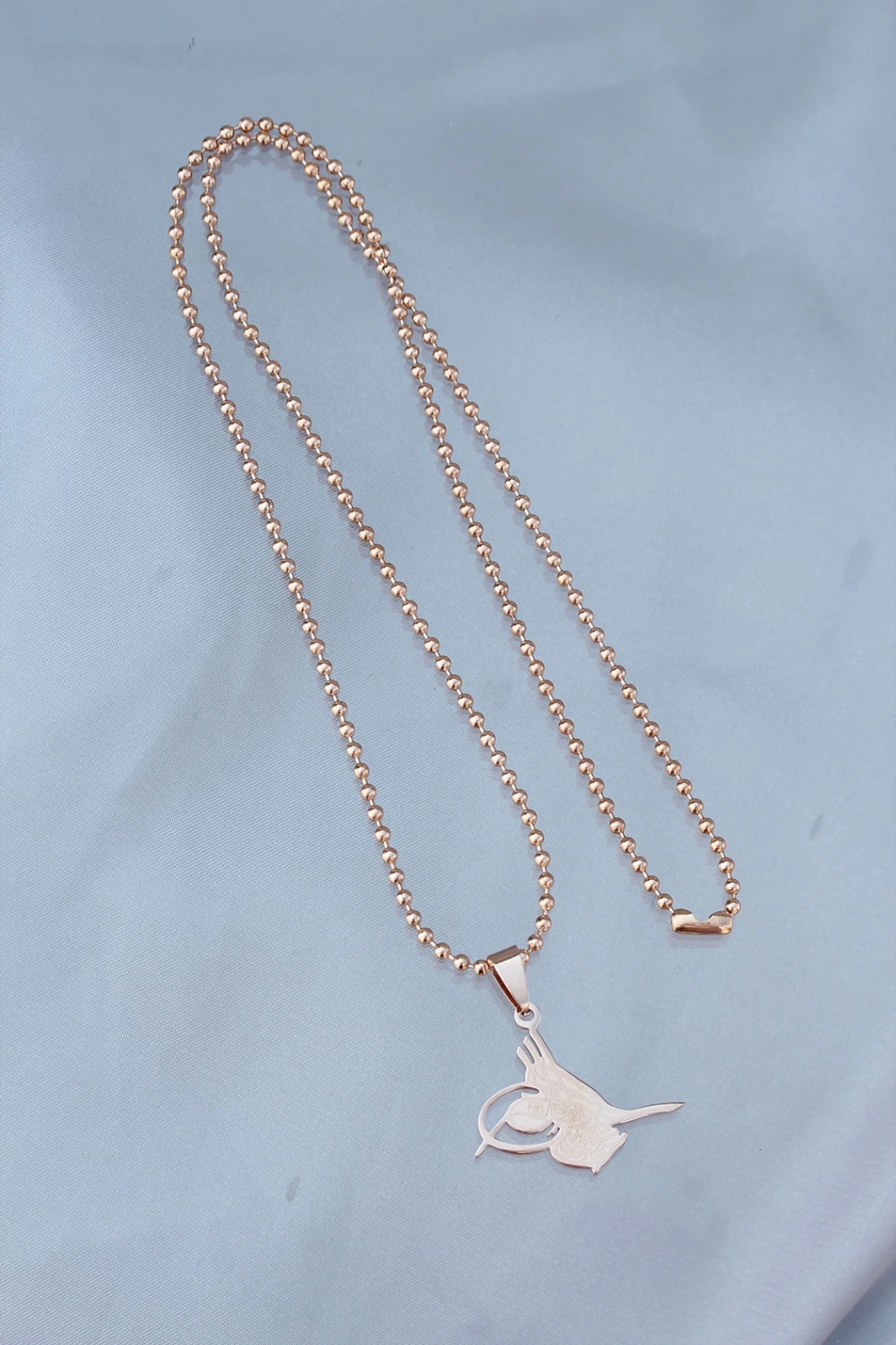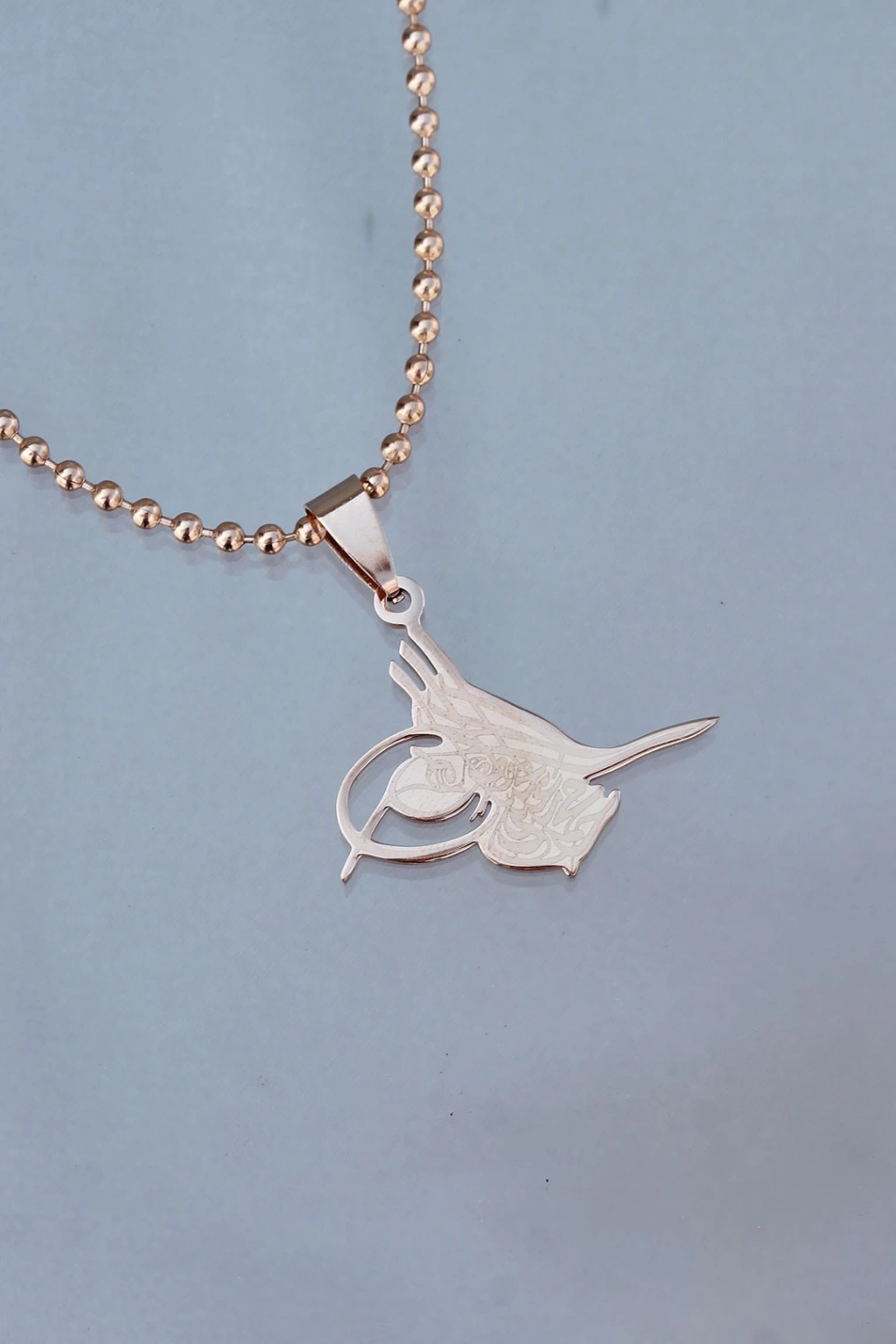 Çelik Uçlu Tuğra Tasarımlı Rose Renk Zincir Kolye