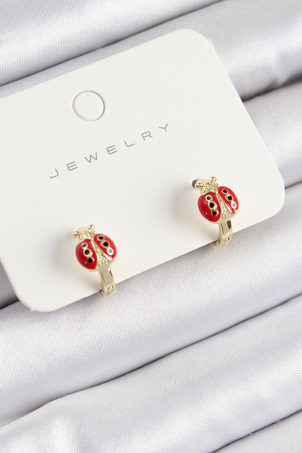 Pirinç Uğur Böceği Model Gold Renk Çocuk Küpe